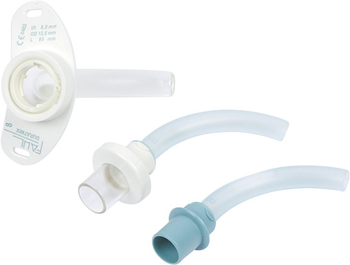 Wij leveren de DURATWIX® LINGO-tracheacanule met 2 binnencanules, één met een 15 mm-draaiconnector en een gevensterde binnencanule met een 15 mm-connector.